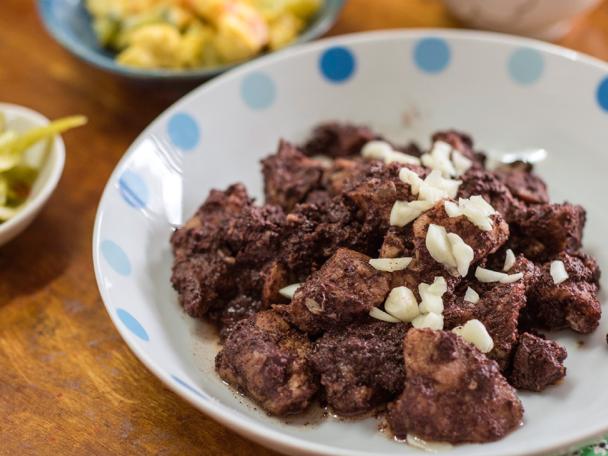 血の力、沖縄の知恵。元気を炒めた一皿。 チーイリチャーは、沖縄県の家庭で古くから親しまれてきた郷土料理です。豚の血を使うという珍しい食材を用いた料理で、名前の「チー」は血、「イリチャー」は炒めることを意味します。つまり「...