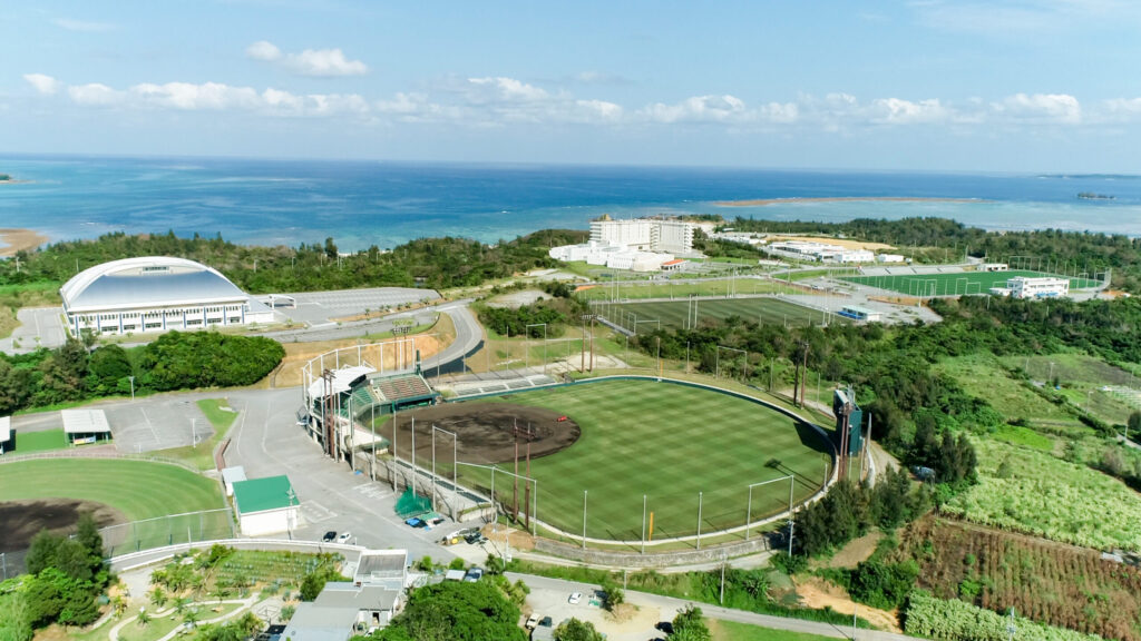 楽天イーグルス、浦和レッズ、コンサドーレ札幌など、数多くのプロスポーツキャンプが行われる金武町のスポーツ施設は、野球、サッカー、陸上競技場、武道館、体育館、競技用プールなどあらゆる施設が充実しています。