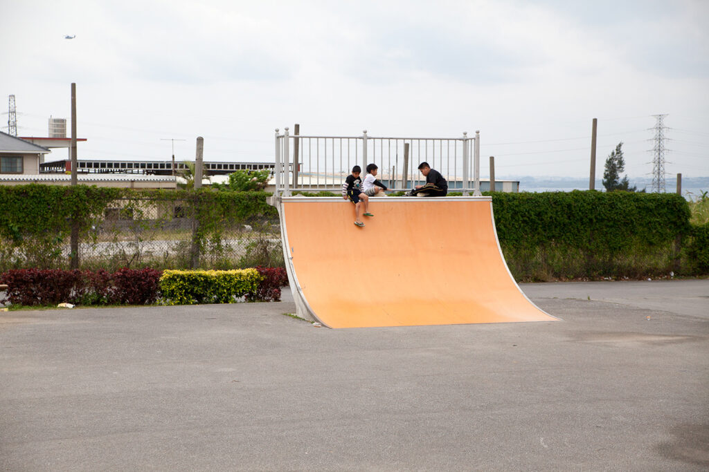 バスケットボール(3オン3)、スケートボード、クライミングウォール、ストラックアウトなどの遊具があり、手軽にスポーツが楽しめる公園です。