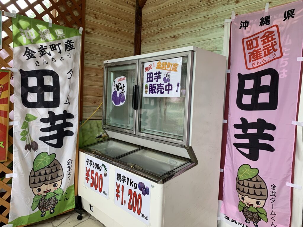 金武町観光協会で田芋の代理販売が始まったタムム〜