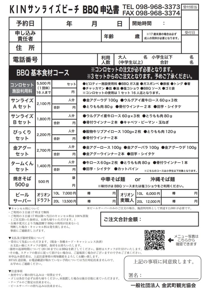 BBQの注文は三日前までの注文で、3セット以上から注文受付いたします。下記の注文用紙で注文ができます。