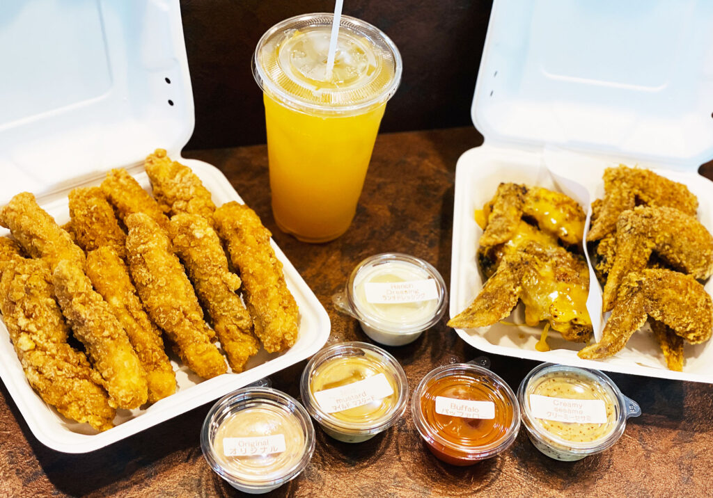 「チキンフィンガー」は骨がないので、子供から大人まで幅広い年齢層の方々に喜ばれています。チキンの美味しさをさらに引き立たせてくれるのが、お店自慢のオリジナルソース。追加できるソースは11種類もあり、その日の気分や好みに合わせて選択できるのは非常に楽しいポイントですね。