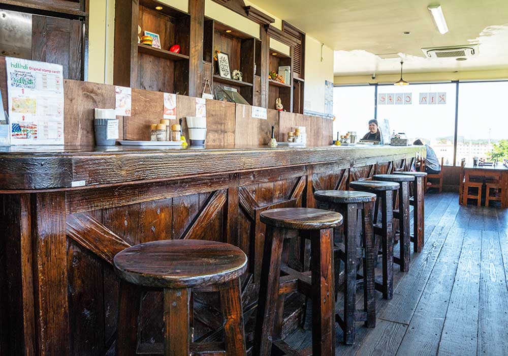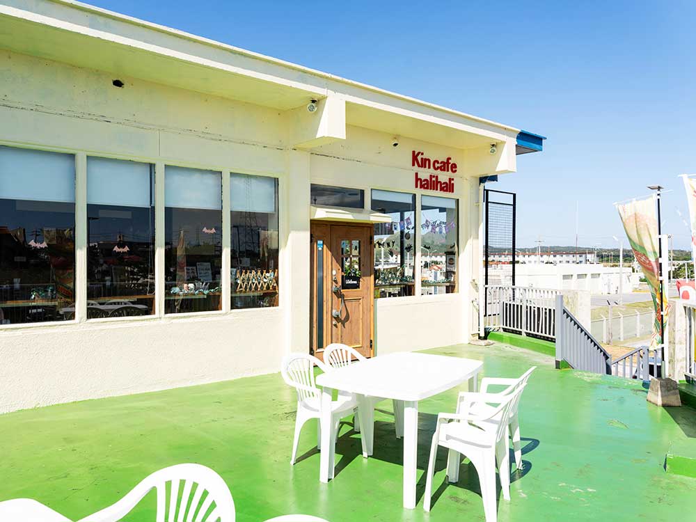 329号線沿いにあるKin cafeは、金武町にあるアメリカ基地キャンプ・ハンセンの前にあります。