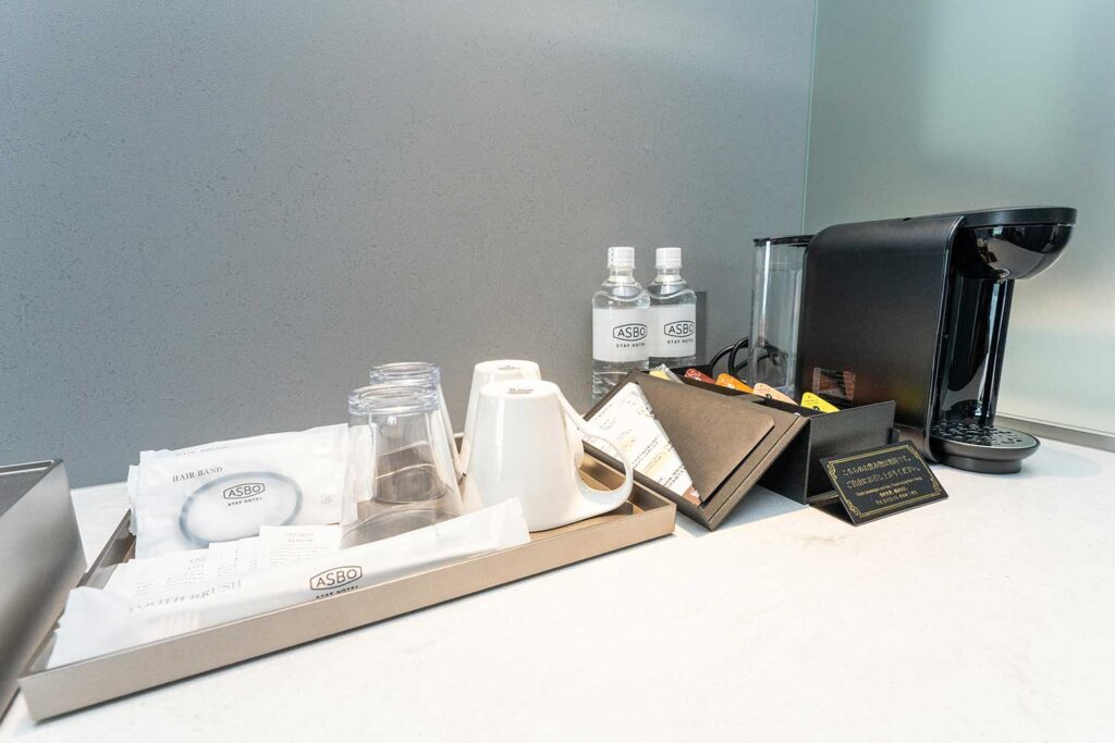 豊富なアメニティや大きめのクローゼット、コーヒー・ミネラルウォーター等のドリンクまでと、長期のホテルライフも充実できますね。