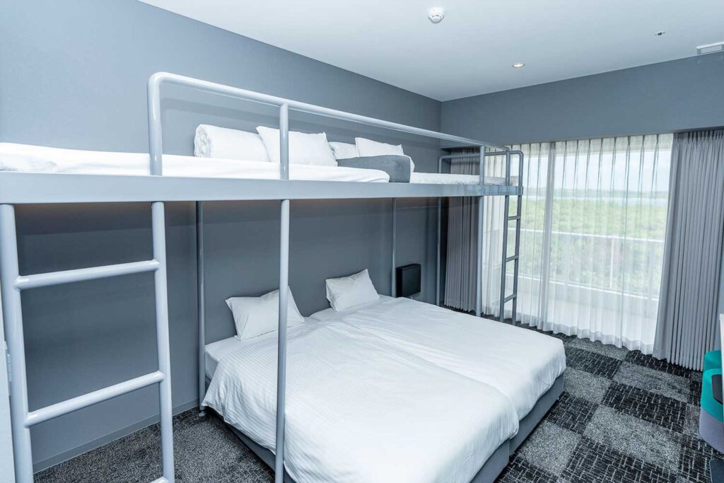 アスボステイホテルの客室は、約30平米のスタンダードルームがあり、ツインのお部屋と2段ベッドのお部屋があります。
