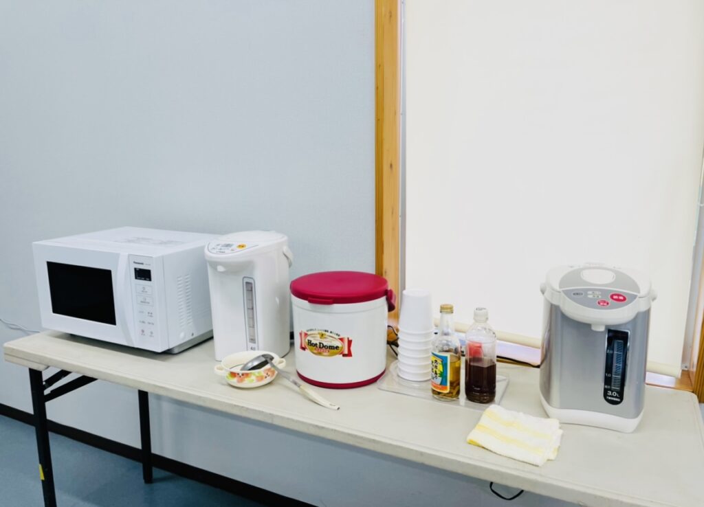冷蔵庫や電子レンジ・炊飯器など、ひととおりの調理用具なども全て揃っており、滞在中に自炊を楽しむことができます。