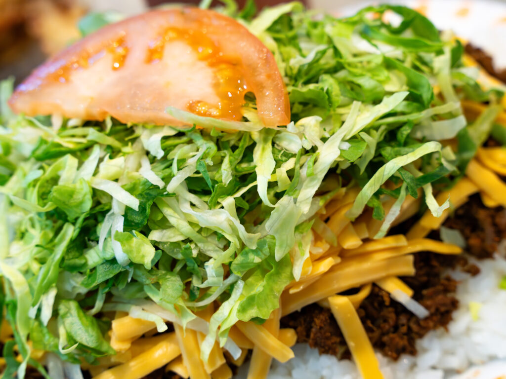 とっても大盛りなタコライスですが、写真ではその迫力が伝わりにくいのが残念です。