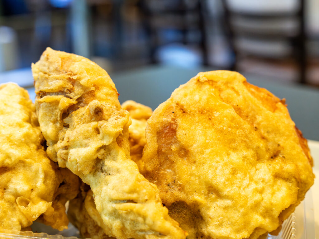 大きめにカットされた県産のチキンを、ご注文いただいてから揚げるので、熱々ジューシーでとっても美味しくて最高。