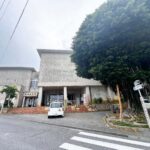 観音寺から公会堂に引き返し、そのまま進むと、金武町役場が見えてくる。當山久三の像は、役場の裏にある。