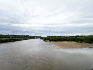 海水と淡水が交わる汽水域に位置するため、シオマネキやさまざまな渡り鳥など多様な生きものが生息しています。遊歩道を歩きながら、安全に自然の豊かさと独特の生態系を間近に体感できる散策スポットです。また、周辺の田園は、水田と川が織りなす緑豊かな景色が広がり、さまざまなサギや渡り鳥が舞う自然の美しさと静けさが魅力です。