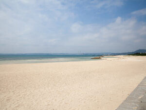 屋嘉入口バス停の正面から石川まで続くビーチです。天然の白浜は美しく、裸足になってどこまでも歩きたくなります。地元の人からは七日浜とも呼ばれていて、夏になると家族連れやカップルで賑わいます。
