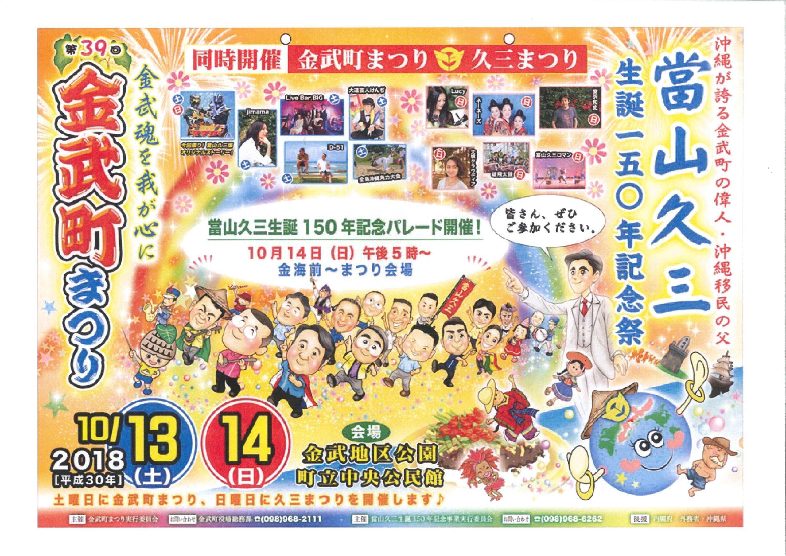 今週末、第39回金武町まつりおよび當山久三生誕150年記念祭が開催され