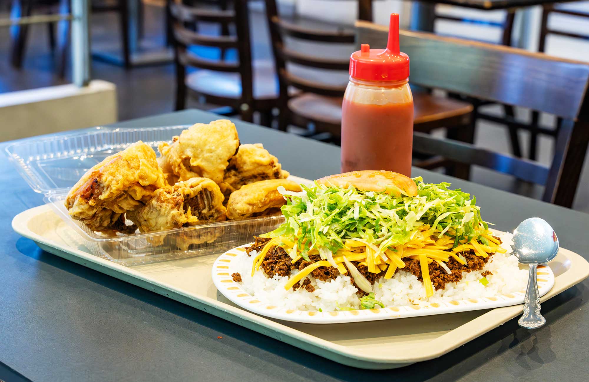 新時代の国民食は金武町発祥! タコライスとは タコライスとは、金武町で生まれたご当地料理。白いごはんの上にスパイスで味付けしたひき肉、レタス、チーズ、トマトなどをのせ、サルサソースをかけて食べる一品です。見た目はメキシコ...